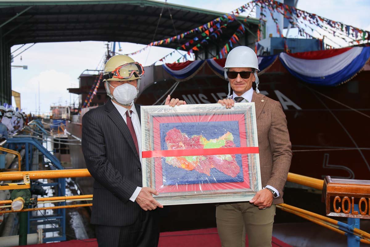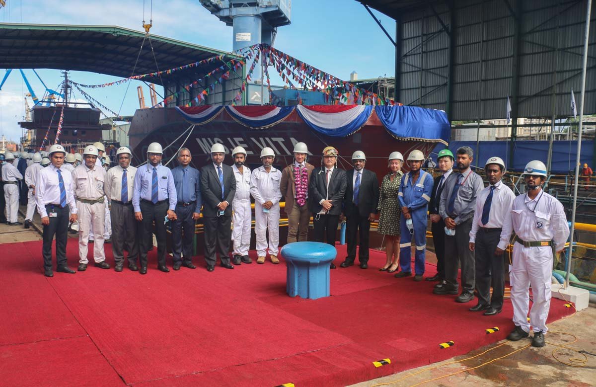 The keel laying ceremony of the 8th vessel “Misje Lily” (Yard No. NCO260), launching of the 6th vessel “Misje Lotus” (Yard No. NCO255), and delivery of the 5th vessel “Misje Rose” (Yard No. NCO254) were celebrated in the presence of owner Mr. Roadd Misje, CFO Ms. Alina Printseva, Site Manager Mr. Thusitha Herath, and Site Superintendents Mr. Venura Wanasinghe and Mr. Prince Dharmaranjan.