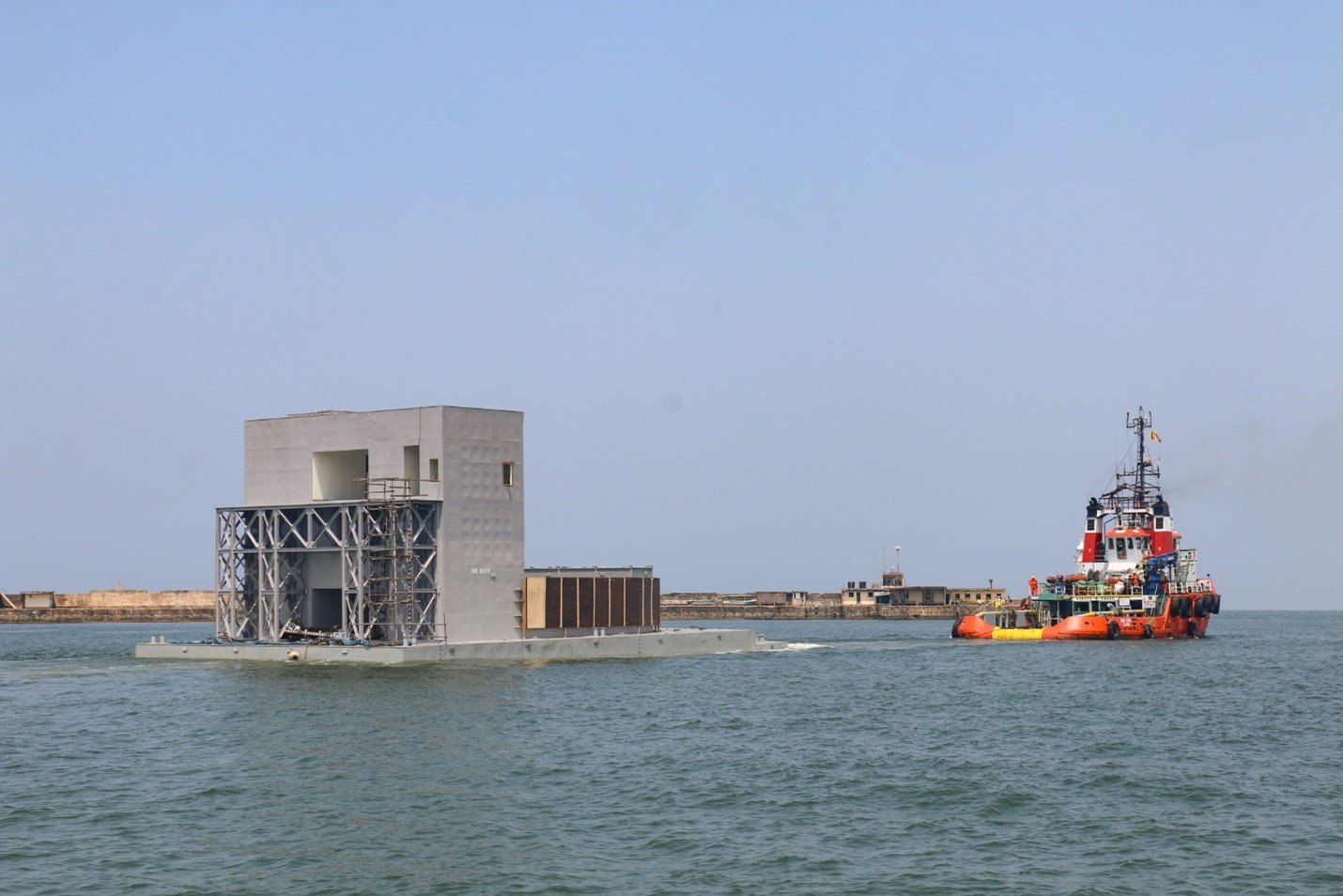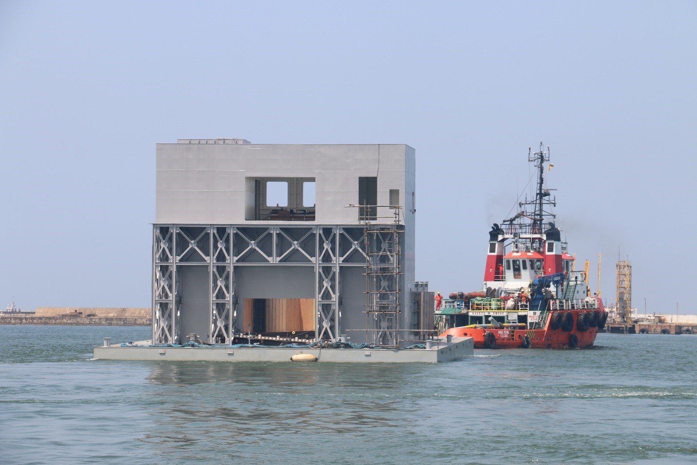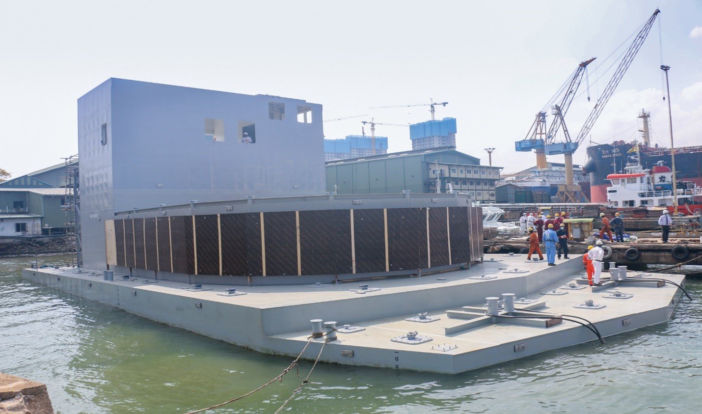 The underwater restaurant structure at Colombo Dockyard premises prior to being towed to Maldives