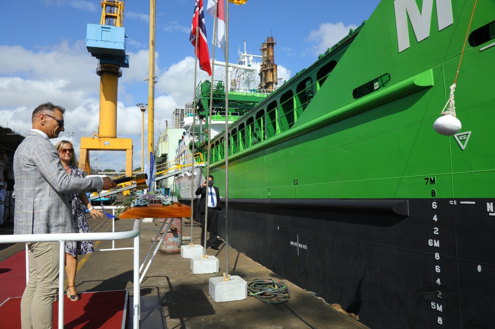 The keel laying ceremony of the 8th vessel “Misje Lily” (Yard No. NC0260), launching of the 6th vessel “Misje Lotus” (Yard No. NC0255), and delivery of the 5th vessel “Misje Rose” (Yard No. NC0254) were celebrated in the presence of owner Mr. Roald Misje, CFO Ms. Alina Printseva, Site Manager Mr. Thusitha Herath, and Site Superintendents Mr. Venura Wanasinghe and Mr. Prince Dharmaranjan.