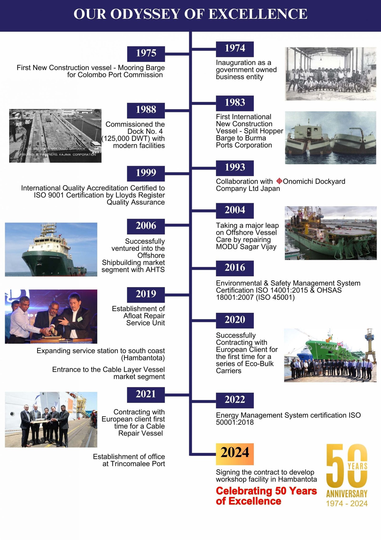 As we celebrate this milestone, I extend my heartfelt gratitude to all our employees, partners, and clients who stood with the company from the beginning of this journey. The unwavering support from them and trust have been instrumental in our journey. Together, we will continue to steer Colombo Dockyard towards new horizons, maintaining our legacy of excellence and contributing to the economic development of Sri Lanka.