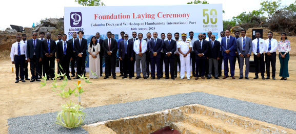 Colombo Dockyard (CDPLC) ceremonially laid the foundation to build a full-fledged engineering workshop at Hambantota International Port on 16th August 2024. This ceremonial occasion will kick off the construction of the engineering workshop in line with the contract signed between CDPLC and Hambantota International Port Group (HIPG). The foundation laying commenced with the traditional of chanting of Pirith, which blessed this historic event and the construction process of this engineering workshop facility.